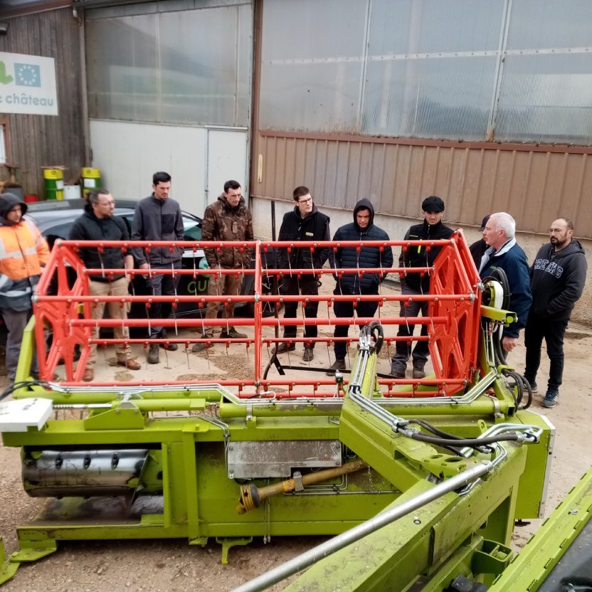 Rassemblés au hangar de la Cuma de Séverac la Château, une douzaine de chauffeurs de moissonneuse batteuse de l’Aveyron, pour la plupart salariés, ont participé fin Mars à une formation sur le réglage et l’utilisation des moissonneuses batteuses, organisée par la FDCUMA et la FRCUMA Occitanie.