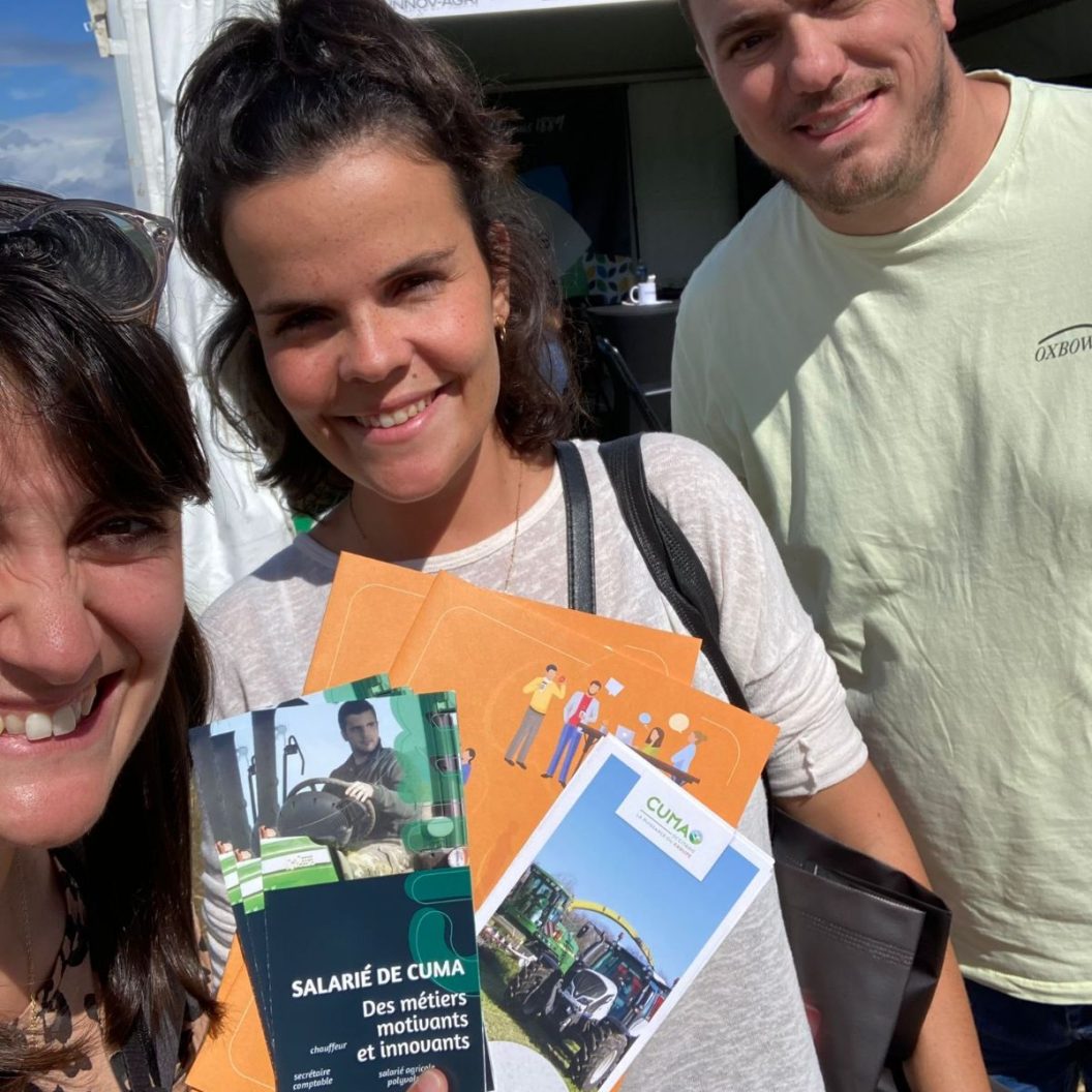 Claire BERGES (Chargée de mission Emploi, Formation et Conseil à la FR Cuma Occitanie), Alexandre ROSSI (Administrateur à la FD Cuma du Gers et Hautes-Pyrénées) et Margaux POUX (Animatrice emploi à la FD Cuma du Tarn-et-Garonne), étaient présents à Innov Agri jeudi 5 septembre 2024, au côté de Margot REYNAUD (Chargée de développement et de recrutement au CFPPA de Ondes), pour venir échanger sur l’emploi et l’apprentissage en CUMA et sur le réseau de façon plus générale.